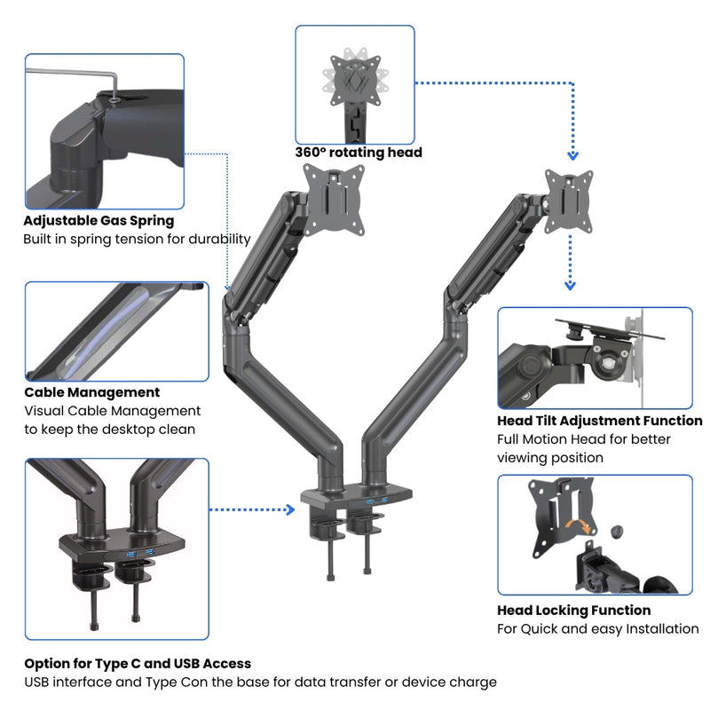 Precision-engineered dual monitor arms